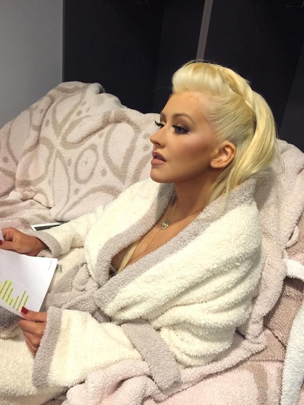 Christina Aguilera aparece só de roupão em imagem divulgada neste domingo, 19, no Twitter. A cantora posou nos bastidores do prêmio “Academy of Country Music Awards” – premiação de música realizada em Arlington, no Texas, nos Estados Unidos. Na foto, Aguilera aparece com parte do sutiã à mostra.